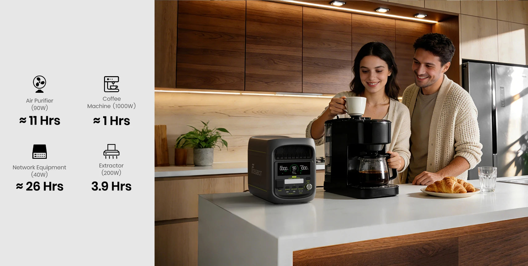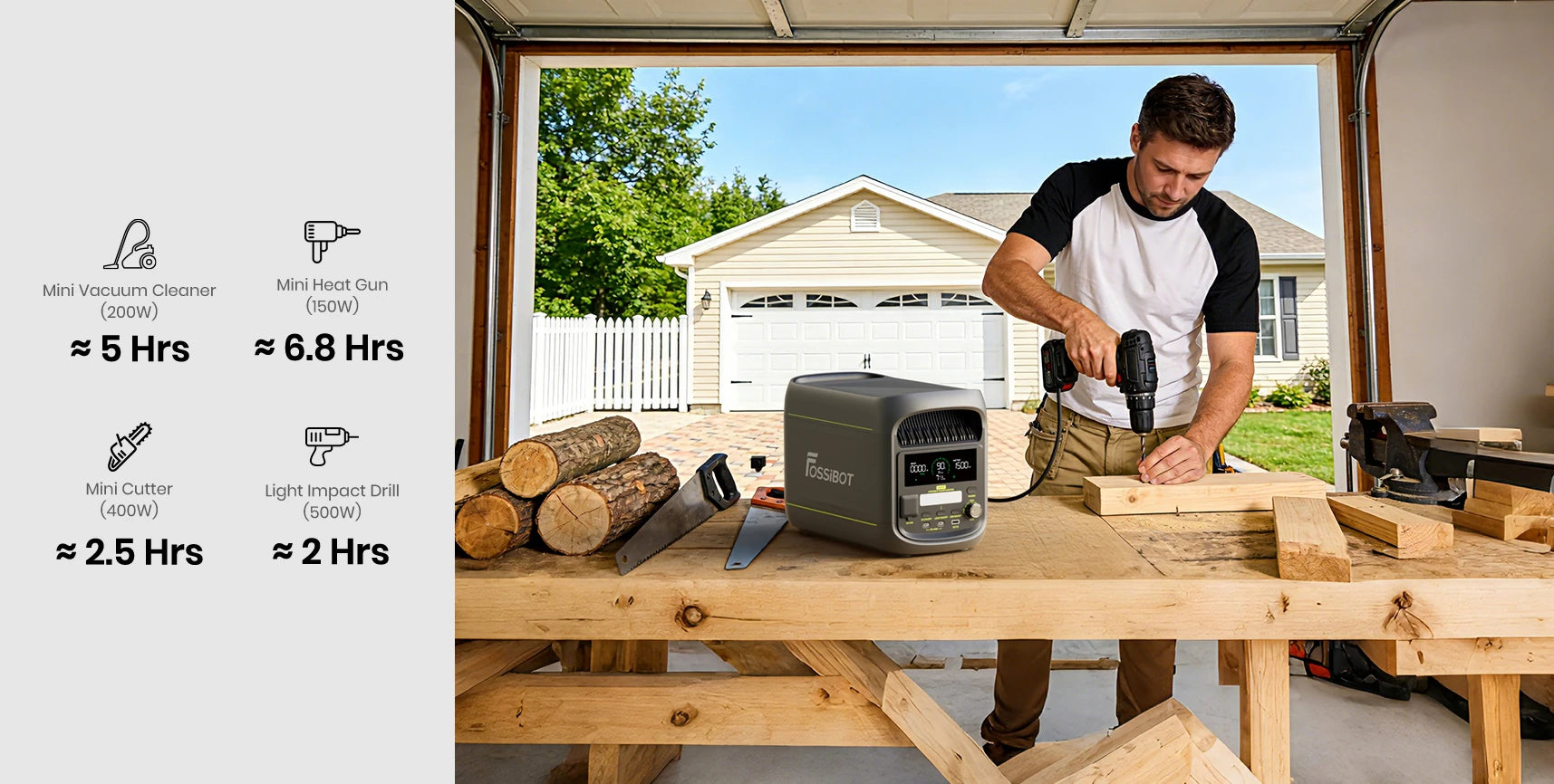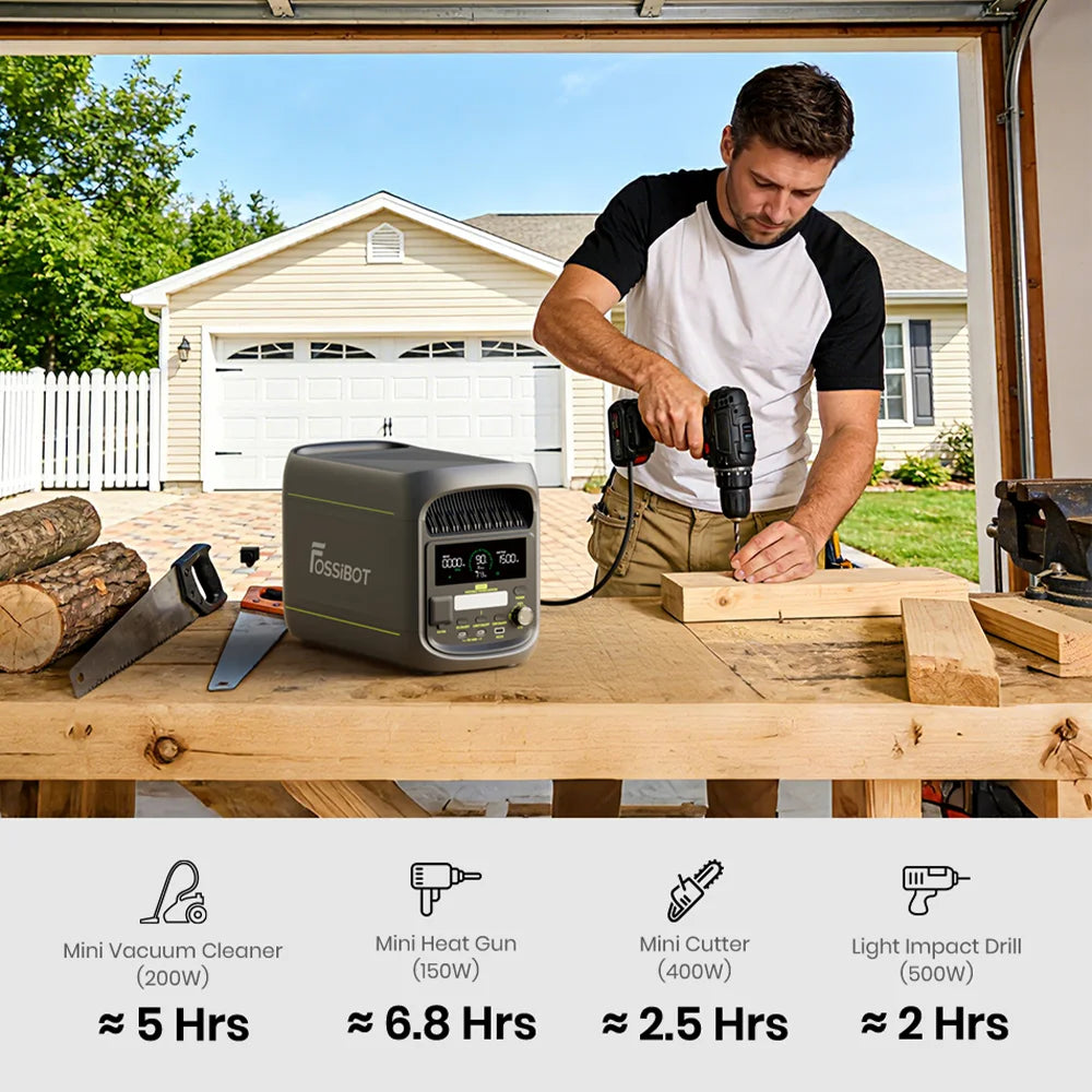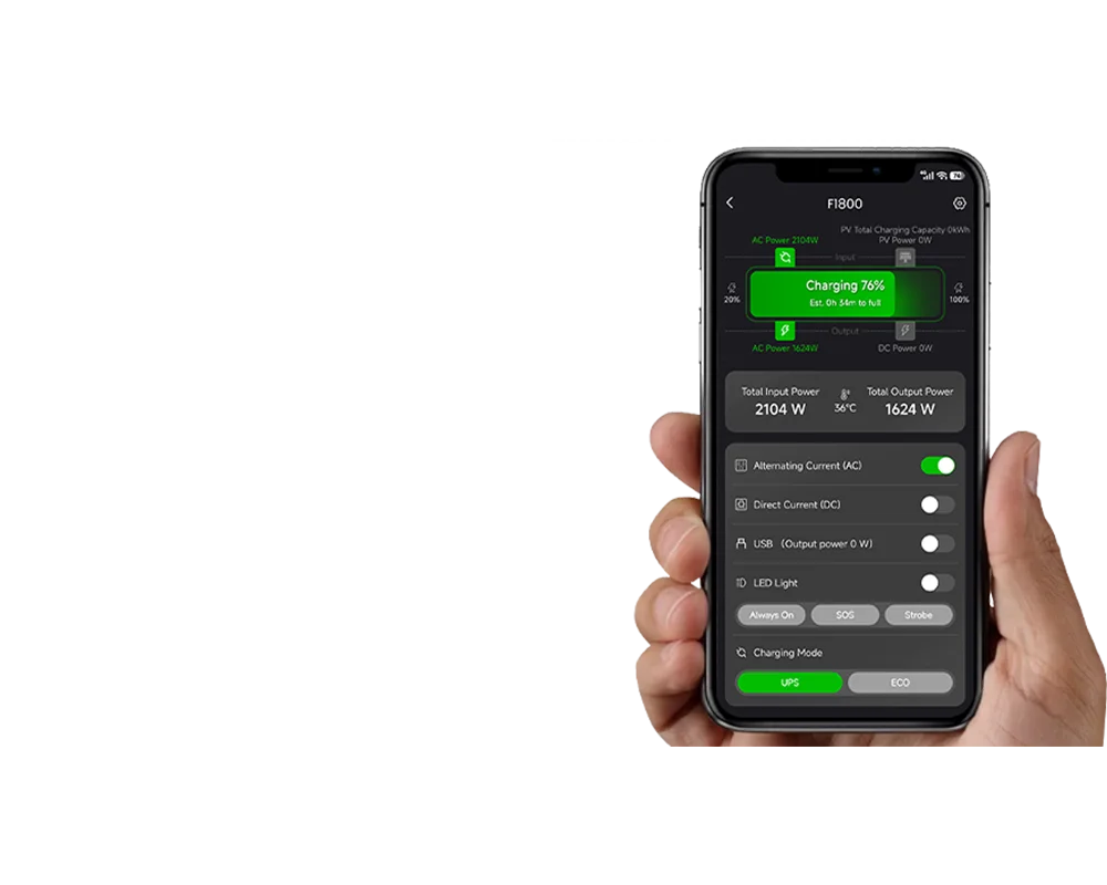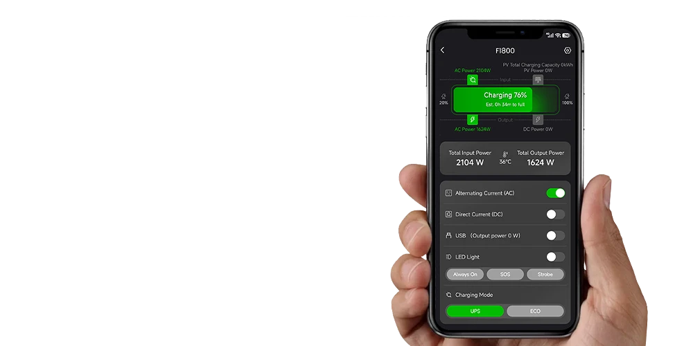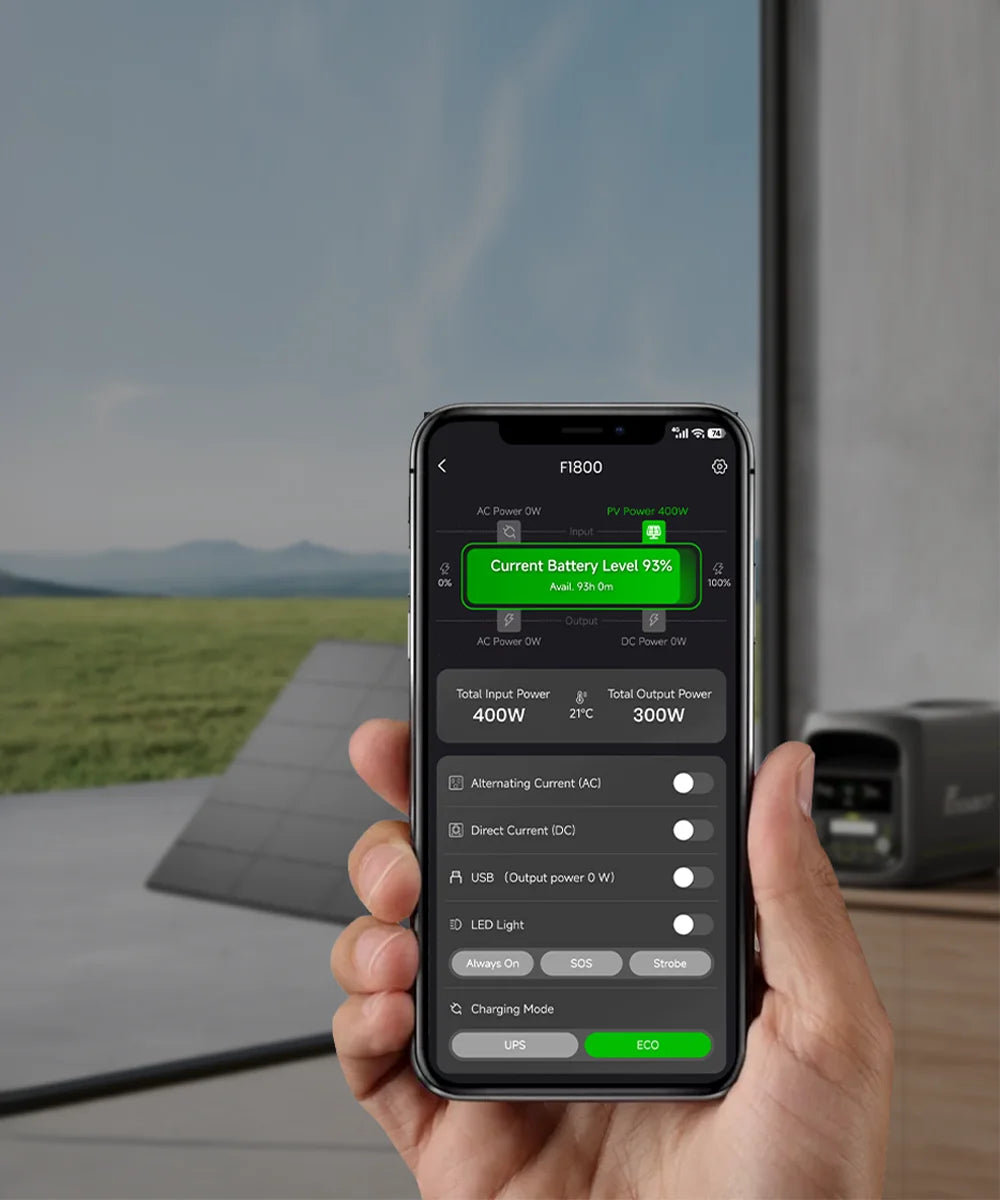 - Slim energiebeheer via de FOSSiBOT App. Controleer de batterijstatus, beheer uitgangen en monitor het energieverbruik altijd en overal in realtime.