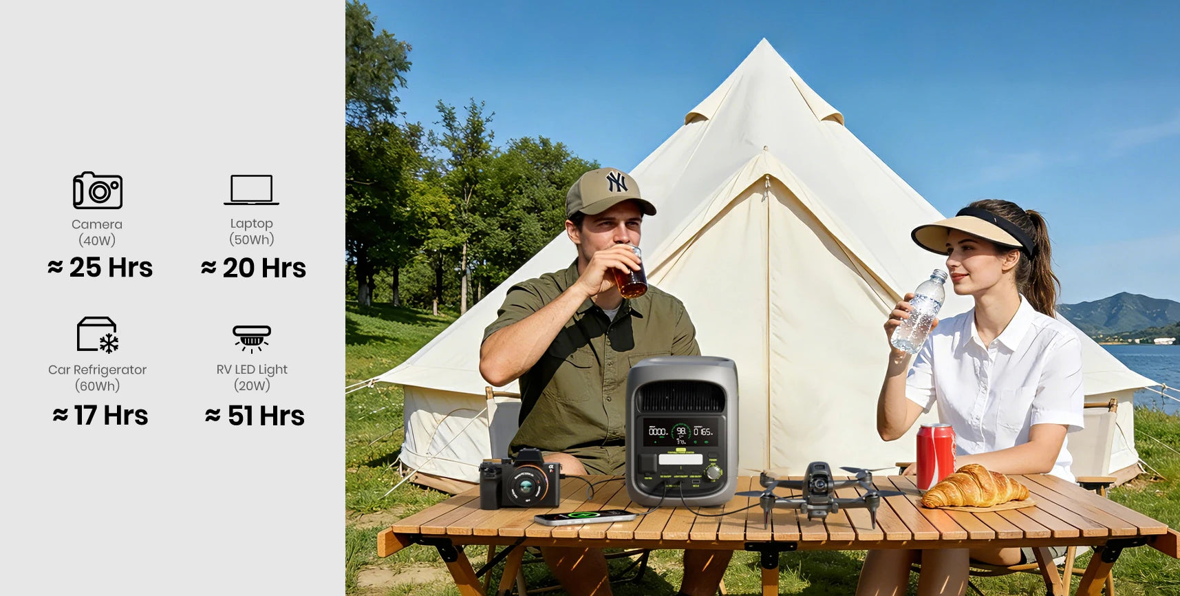 - Aangedreven door duurzame EVE® LiFePO4-batterijcellen, goed voor tot 4.000 laadcycli en ondersteund door een 5 jaar zorgeloze garantie, voor veilige, stabiele en langdurige energie – ideaal voor dagelijks gebruik en outdoor toepassingen.