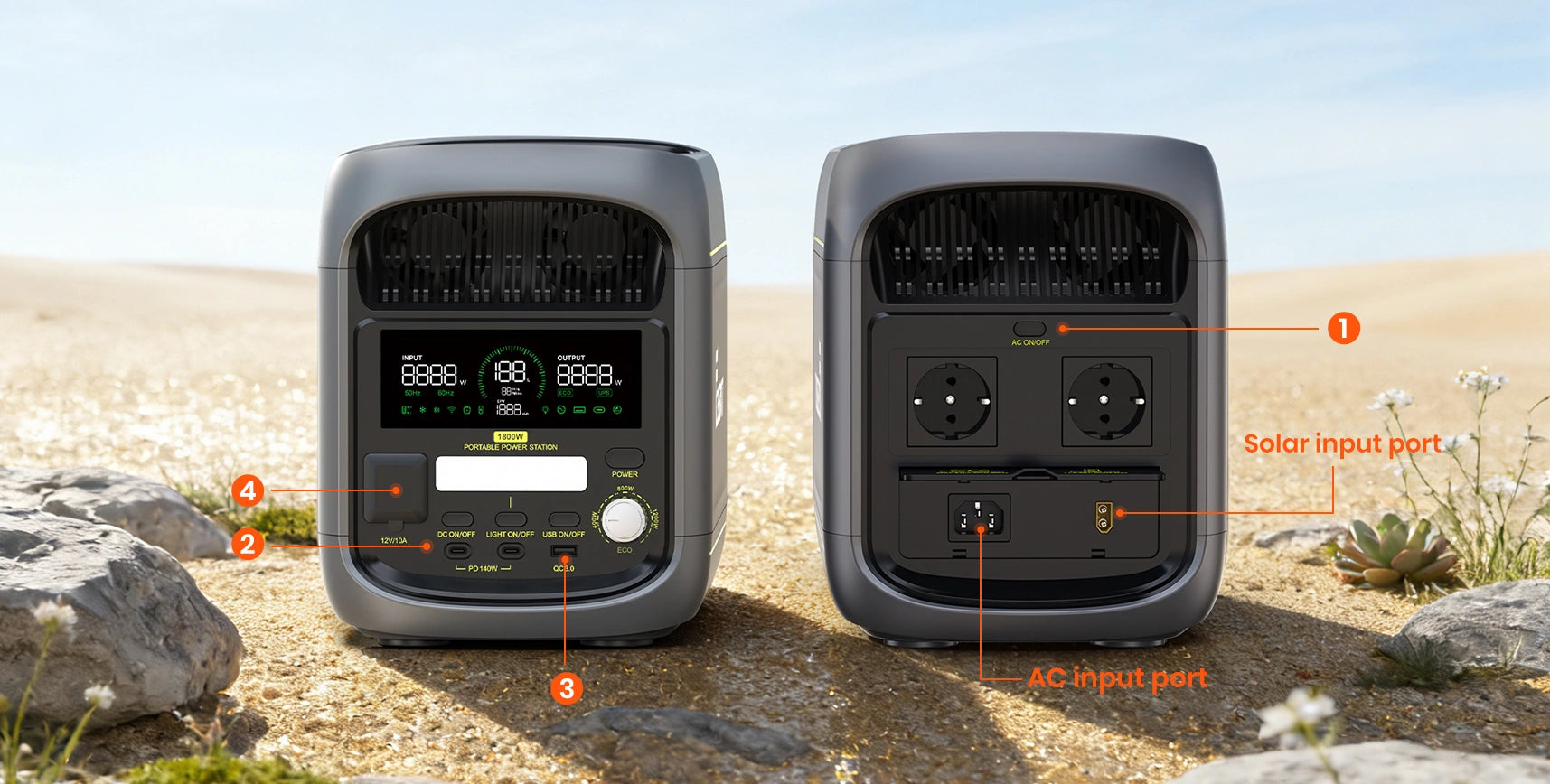 - Supersnel opladen: laad tot 80% in slechts 45 minuten en volledig in ongeveer 1 uur via AC, of laad volledig op in ongeveer 2 uur met tot 500W zonne-energie voor snelle en flexibele energievoorziening.