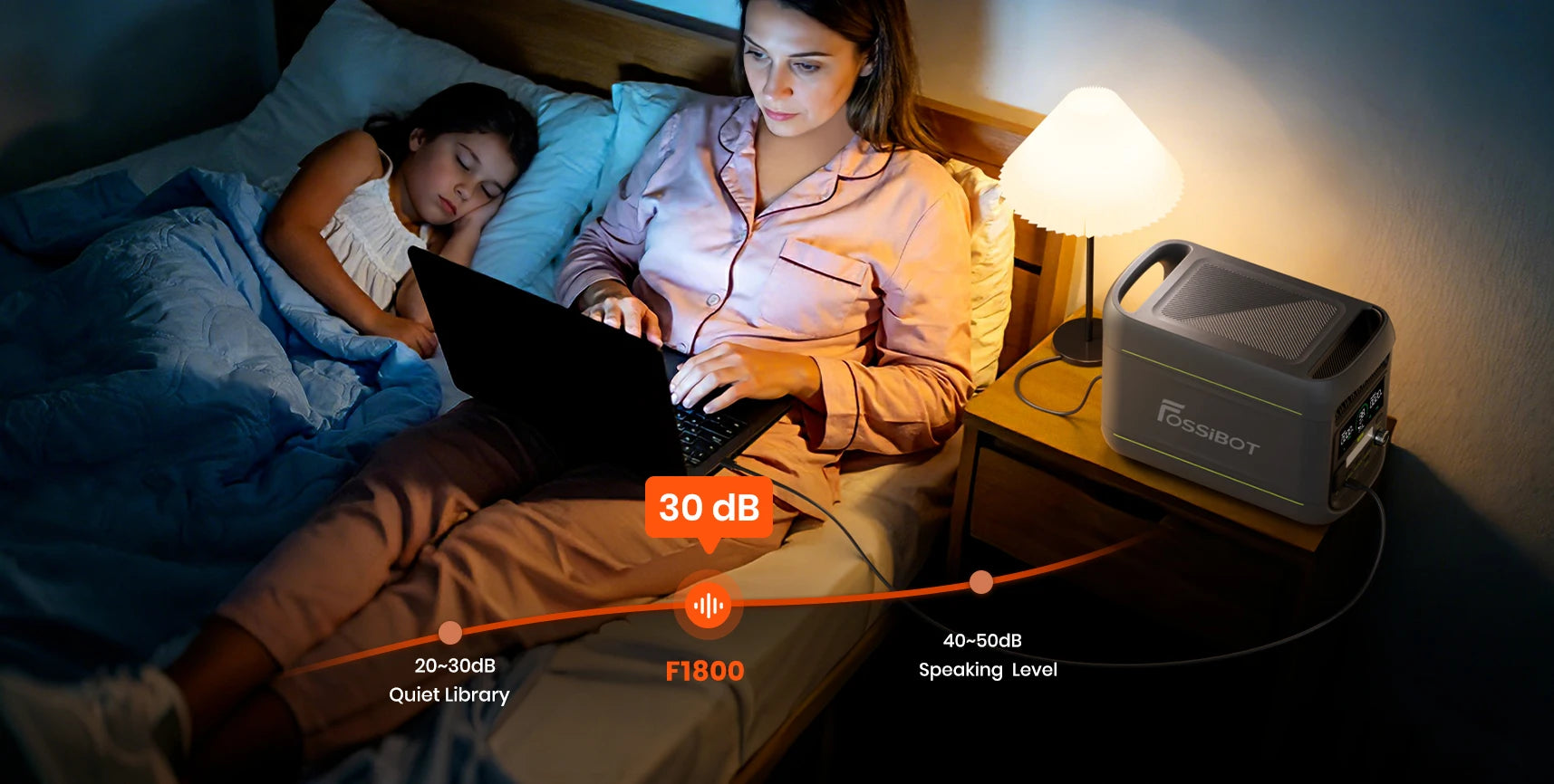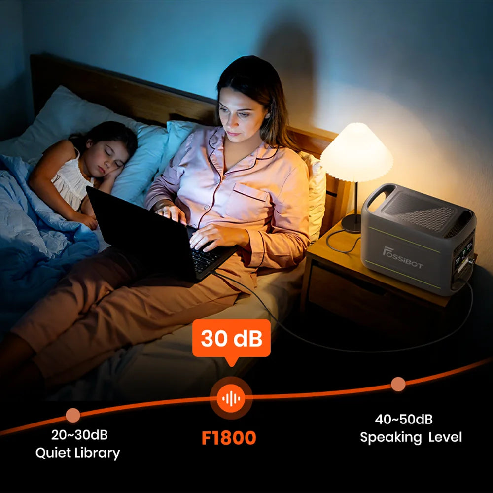 - Ultrastille werking van slechts ~30dB, stiller dan een fluistering, zodat je ongestoord van stroom kunt genieten – perfect voor nachtgebruik, kamperen of binnengebruik.